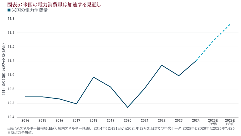 - テクノロジーとインフラ:ハイパースケーラーの設備投資は、テクノロジー分野のみならず、建設やエネルギー需要にも広がり、米国経済を支える主柱となっています。