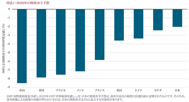 米国の他にも多くの国で景気刺激策が実施される見通しです。欧州では、ドイツの大型財政支援策を筆頭に、景気対策の主な担い手が欧州中央銀行(ECB)の金融政策から財政政策に引き継がれつつあります。しかし、ユーロ圏ではこれまでに実施された利下げの遅行効果が景気を支え続ける可能性が高いことも忘れてはなりません。一方、中国では、依然としてデフレリスクに直面している経済を刺激するために、金融政策と財政政策の両方が用いられる可能性が高いと思われます。日本については、緩やかな金融引き締めが予想されていますが、新たに選出された高市早苗総理大臣は複数年度で財政状況を判断するという野心的なアプローチをとり、経済成長を優先する方針を示しているため、支援的な財政政策が展開されるでしょう。