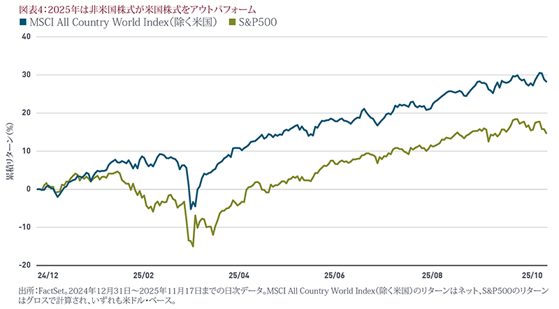 2出所:FactSet、2025年10月31日現在。非米国企業はMSCI ACWI(除く米国)の構成企業です。